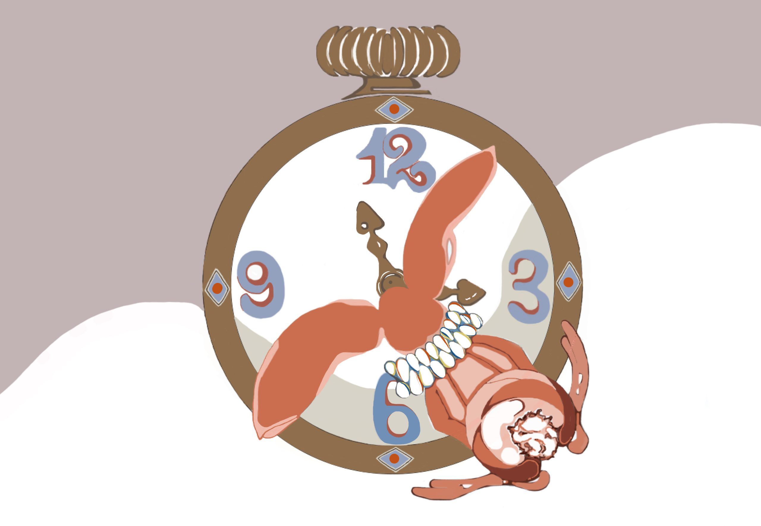 L’inafferrabile coniglio e il suo orologio, vittima del tempo che scorre. “Albert Einstein” diceva che il tempo è un illusione, un elemento incontrollabile al quale è difficile associare un vero e proprio valore, ma se accostato a determinati momenti, tutto diventa più semplice, come cogliere un fiore o bere un caffè.